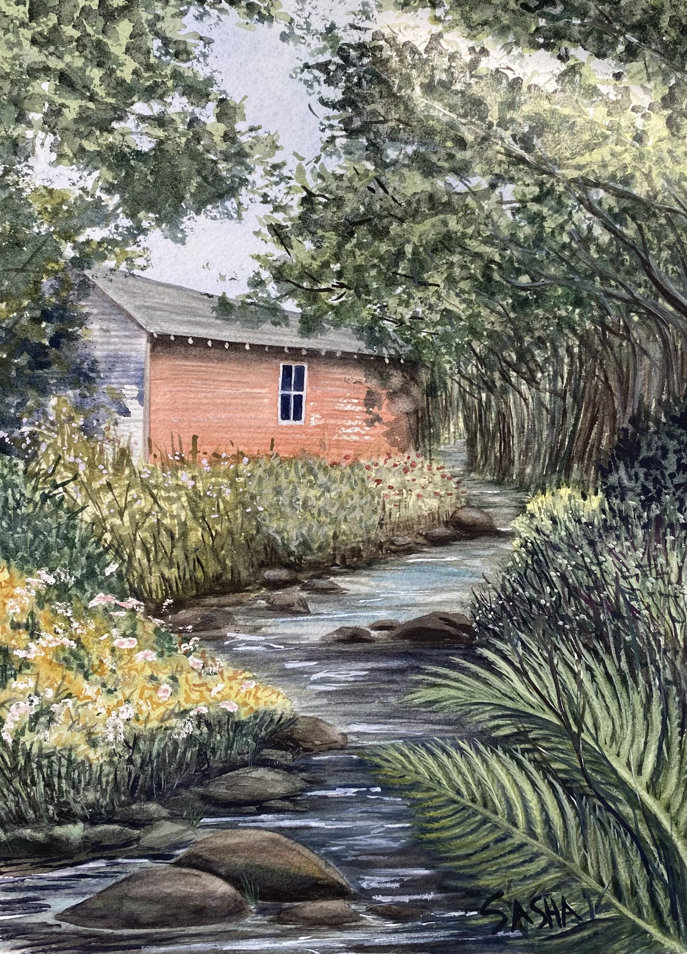 Barn by the Stream